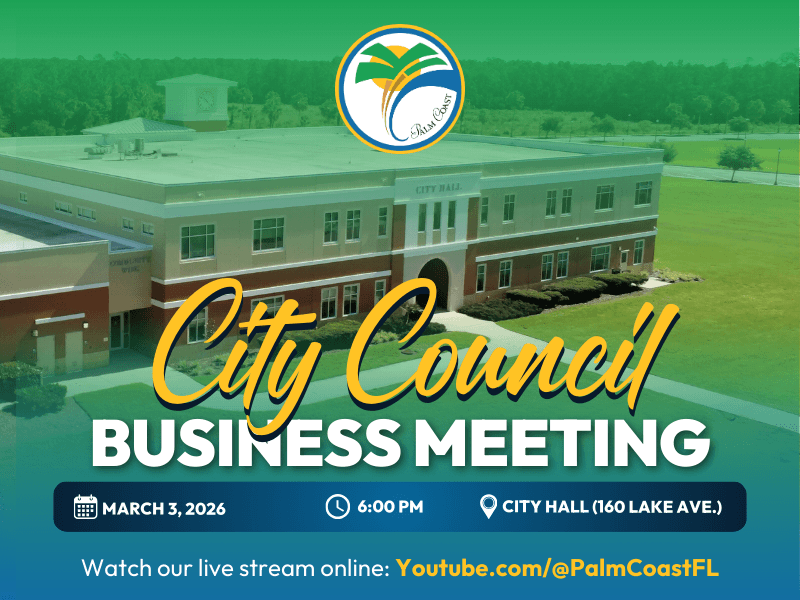 The Palm Coast City Council meets regularly to discuss and vote on official City business. These meetings are open to the public, and Palm Coast residents are strongly encouraged to attend. An increase in public engagement helps to build a stronger sense of community, increase valuable discussions, and decrease division.